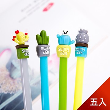 芬菲文創 可愛多肉植物仙人掌造型0.5mm黑色水性筆中性筆 5支