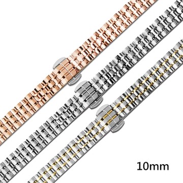 Watchband / 10mm / 各品牌通用 亮光色澤 蝴蝶雙壓扣 不鏽鋼錶帶