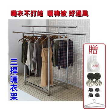 【Style】買1送3!!升級加粗管徑-2.4米X型三桿全不鏽鋼伸縮曬衣架/伸縮衣架(贈防倒神器/防風扣/彩色夾)