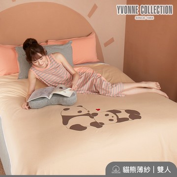 YVONNE 慵懶貓熊 雙人薄紗被(6x7呎)-淺卡其