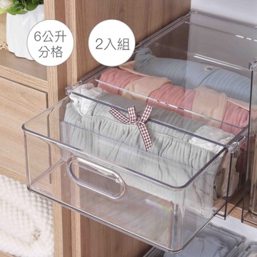 【帕斯特收納生活】PET透明抽屜式可疊加多功能收納盒 桌上收納置物盒 多功能整理儲物盒(6公升分隔/2入組)