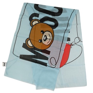 MOSCHINO 經典泰迪熊LOGO撞色絲質圍巾(淺藍 45*140)