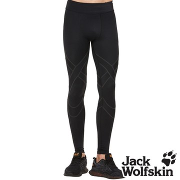 【Jack wolfskin 飛狼】男 高彈性防曬壓力褲 壓縮褲『黑底 / 鐵灰線條』
