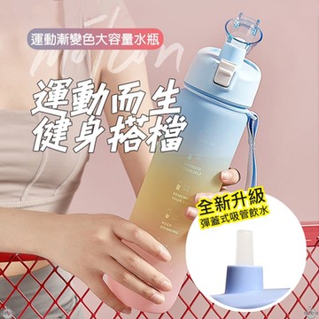 【樂豐生活】 (買1送1) 2入組全新升級彈蓋式漸層水壺1L(吸管版2色)
