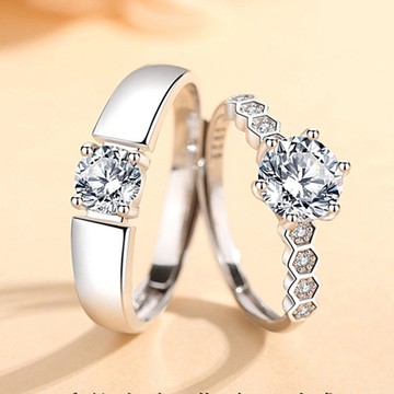 1.25克拉公主切割莫桑石戒指 | 莫桑石婚戒 | 情侶對戒 | 925純銀