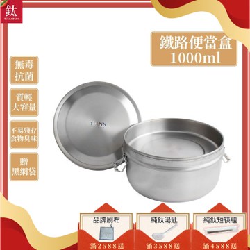 TiANN 鈦安純鈦餐具 1000ml 鈦聰明 扣式含蓋鐵路便當盒(快)