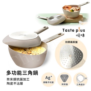 【Taste Plus】悅味元素 小資露營 居家 三角鍋 奈米銀抗菌 陶瓷釉不沾鍋-板岩灰(贈蒸盤)