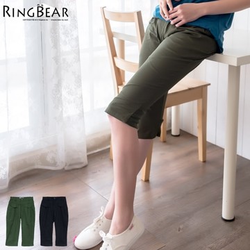 高含棉鬆緊腰鈕釦造型多口袋短褲/五分褲