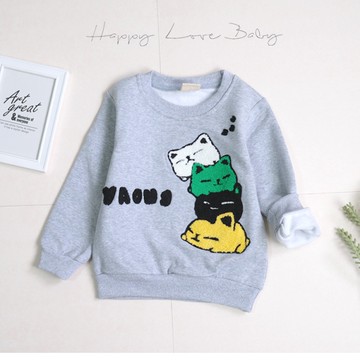 厚款 繽紛睡覺貓咪刷毛上衣 秋冬童裝 男童上衣 男童長袖 男童棉T 男童T恤 長袖上衣 刷毛上衣