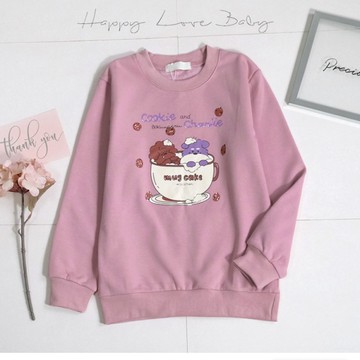外貿卡通動漫滿印圓領寬松顯瘦加絨長袖套頭衛衣減齡俏皮上衣可愛