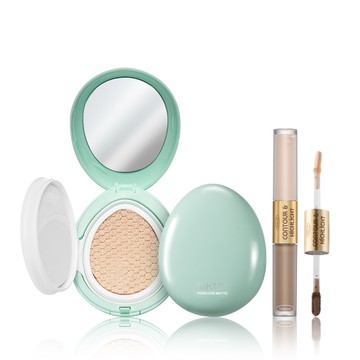 MKUP 美咖【新品上市】精修輪廓高光修容液+零毛孔柔霧控油氣墊粉餅SPF25 PA++