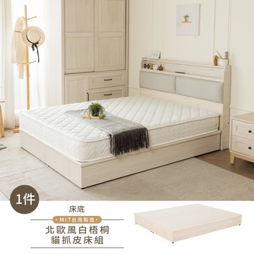 【藤原傢俬】白梧桐雙USB貓抓皮收納空間床組-單抽3.5尺單人加大(雙USB貓抓床頭+收納空間床底+單抽屜)