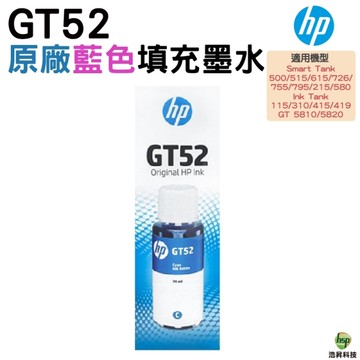 HP GT52 藍色 原廠填充墨水 適用GT5810 5820 IT115 315 415 419 615 515 500 ST725 ST755 ST795
