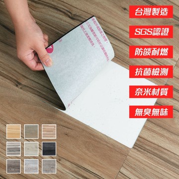 鴻民家飾 超耐磨奈米自黏地板貼 12片 台灣製造 防焰抗菌防黴 PVC木紋地板貼 木紋色 1.5 x 152 x 914mm