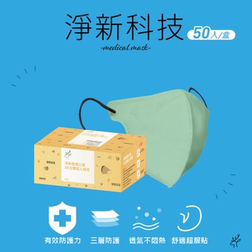 淨新 醫療口罩(未滅菌)-3D立體成人細耳50入/盒-醫用口罩-台灣製-(2色)