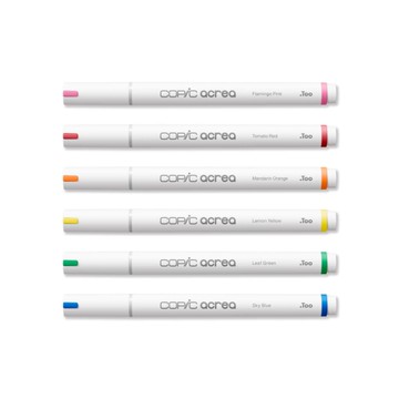 COPIC acrea 水性彩顏筆(鮮豔色)-火烈鳥粉紅/番茄紅/蜜橘色/檸檬黃/葉綠色/天空藍