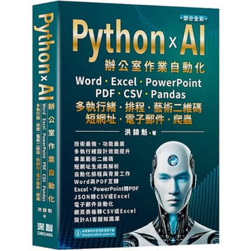 Python x AI辦公室作業自動化:Word、Excel、PowerPoint、PDF、CSV、Pandas-多執行緒、排程、藝術二維碼、短網址、電子郵件、爬蟲