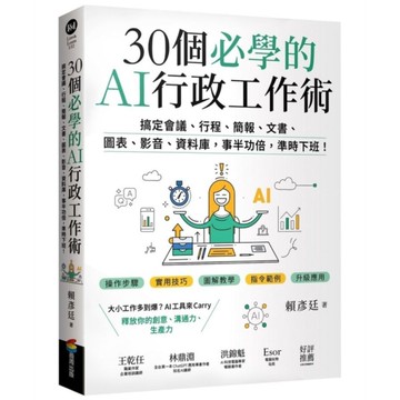 【電子書】30個必學的AI行政工作術:搞定會議、行程、簡報、文書、圖表、影音、資料庫,事半功倍,準時下班!