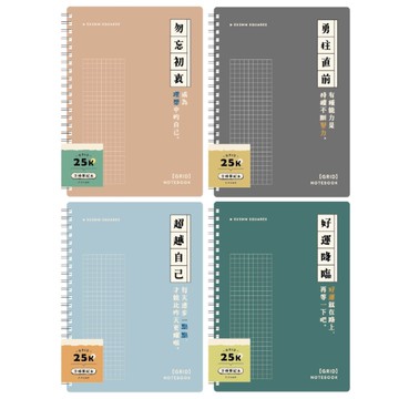 簡單生活 雙線圈方格筆記本 25K-暖棕/鐵灰/雅藍/青綠