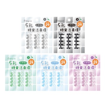 五孔果凍活頁環-透明/黑白/綠色/藍色/紫色