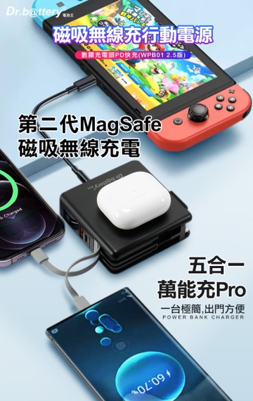 LAPO 萬能行動電源Pro 萬能充Pro 多功能 五合一 充電器/無線充/行動電源/自帶充電線 -