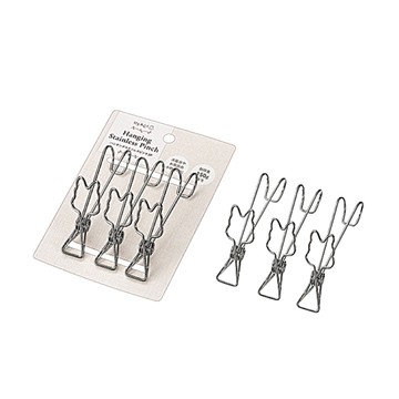 asdfkitty*日本 ECHO 造型不鏽鋼掛勾夾3入-曬衣夾-可掛在網板.洞板.鋼架上-可夾菜瓜布.手套.牙膏-正版
