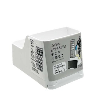 asdfkitty*日本SURUGA 可伸縮手機架+文具收納盒 筆筒 白色-日本正版商品