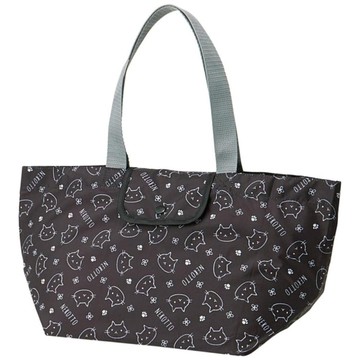 asdfkitty*黑色貓咪可折疊收納購物袋/手提袋/肩背袋/置物袋/收納袋-日本正版商品