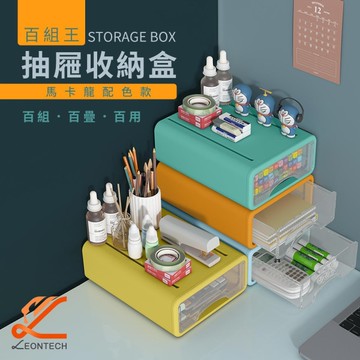 馬卡龍 桌面抽屜收納盒 置物盒 儲物盒 文具盒 抽屜櫃 4入組 (黃、綠、藍、橘各一)