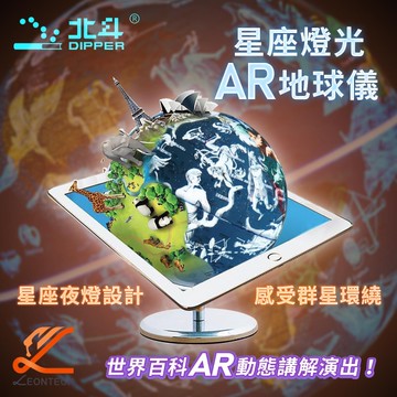 北斗星AR星座發光地球儀 趣味主題 360度世界名景觀賞 20CM