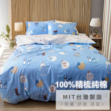 單人被套5x7尺 100%精梳純棉【動物星球】精品純棉 大鐘印染 寢居樂台灣製