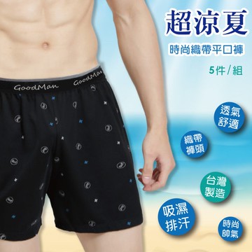 5件免運組【GM+】時尚印花男性織帶四角褲 / 台灣製 / 8190