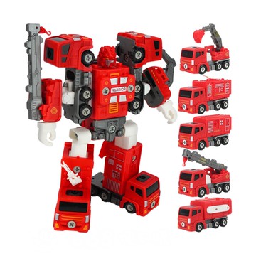 5合1DIY拆裝消防車組(可大合體變機器人)(295)【888便利購】
