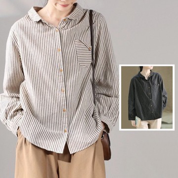 9th street 法式條紋寬鬆襯衫|秋冬簡約設計感上衣・韓系氣質外搭(預購)