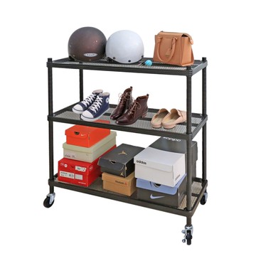 【品樂生活】35X90X98CM 耐重菱形網三層推車 烤漆霧黑/置物架/波浪架/收納架/鐵力士架/鐵架