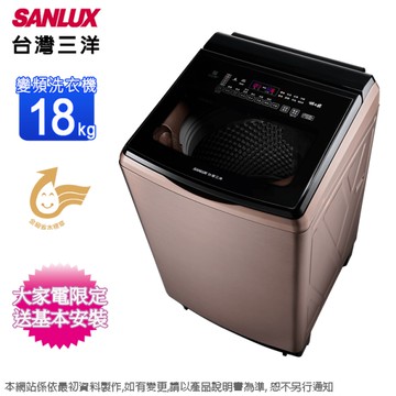 SANLUX台灣三洋18公斤DD直流變頻超音波洗衣機 SW-V19A~含基本安裝+舊機回收