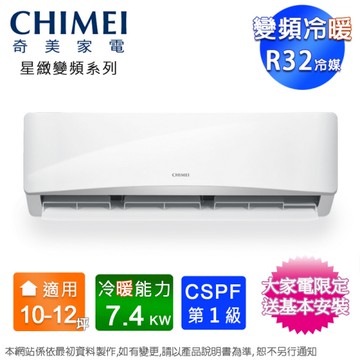 CHIMEI奇美10-12坪一級變頻冷暖分離式冷氣 RB-S74HG1+RC-S74HG1~含基本安裝+舊機回收