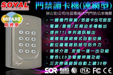 [昌運科技] SOYAL AR-363-E(AR-363E) 雙頻 EM/Mifare 霧香檳 鐵殼 感應式控制器 門禁讀卡機