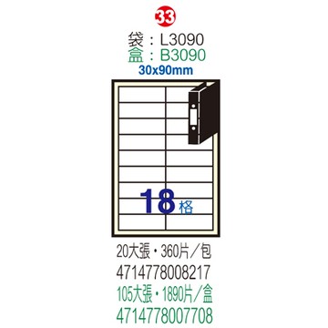 Herwood 鶴屋牌 18格 30x90mm NO.L3090 A4雷射噴墨影印自黏標籤貼紙/電腦標籤 20大張入