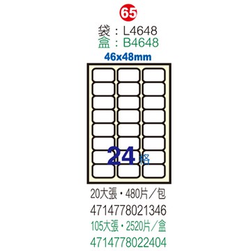 Herwood 鶴屋牌 24格 46x48mm NO.L4648 A4雷射噴墨影印自黏標籤貼紙/電腦標籤 20大張入
