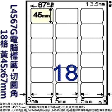 龍德三用列印電腦標籤/LD-834-Y-A/淺黃/30格/105張/盒