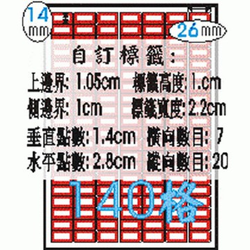Herwood 鶴屋牌 140格 14x26mm NO.L4075 紅框 A4雷射噴墨影印自黏標籤貼紙/電腦標籤 15大張入