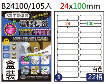 Herwood 鶴屋牌 22格 24x100mm NO.B24100 A4雷射噴墨影印自黏標籤貼紙/電腦標籤 105大張入