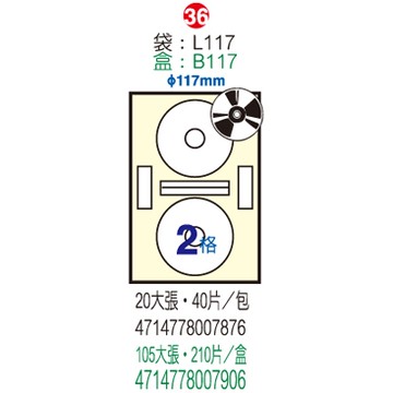 【文具通】B117電腦標籤2格 (光碟)105入 ASB117【APP滿額下單10%點數(單一帳號最高5000點)】1/31止