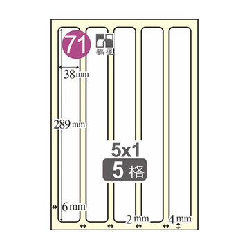 Herwood 鶴屋牌 5格 38x289mm NO.LL38289 A4 雷射自黏標籤貼紙/電腦標籤 (亮面銅版紙) 20大張入