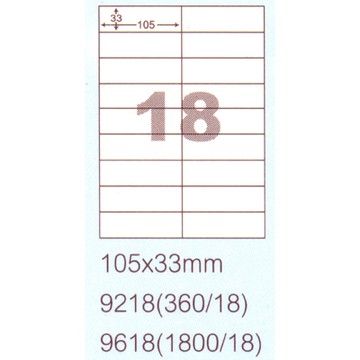 阿波羅 105x33mm NO.9218 18格 A4 雷射噴墨影印自黏標籤貼紙 20大張入