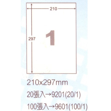 華麗牌 阿波羅 A4 電腦列印標籤 1格 1000張入 / 箱 WL-9601-1K