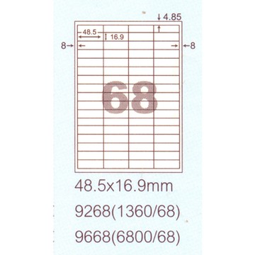 阿波羅 48.5x16.9mm NO.9268 68格 A4 雷射噴墨影印自黏標籤貼紙 20大張入