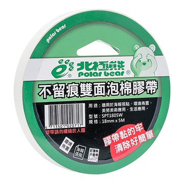 北極熊 不殘膠雙面泡棉膠帶 18mm x 5m 適用於海報張貼、環境佈置 1個