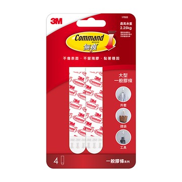3M 思高牌 無痕 17022 大型雙面膠條/無痕掛勾膠條 4入 單片承重2.25kg